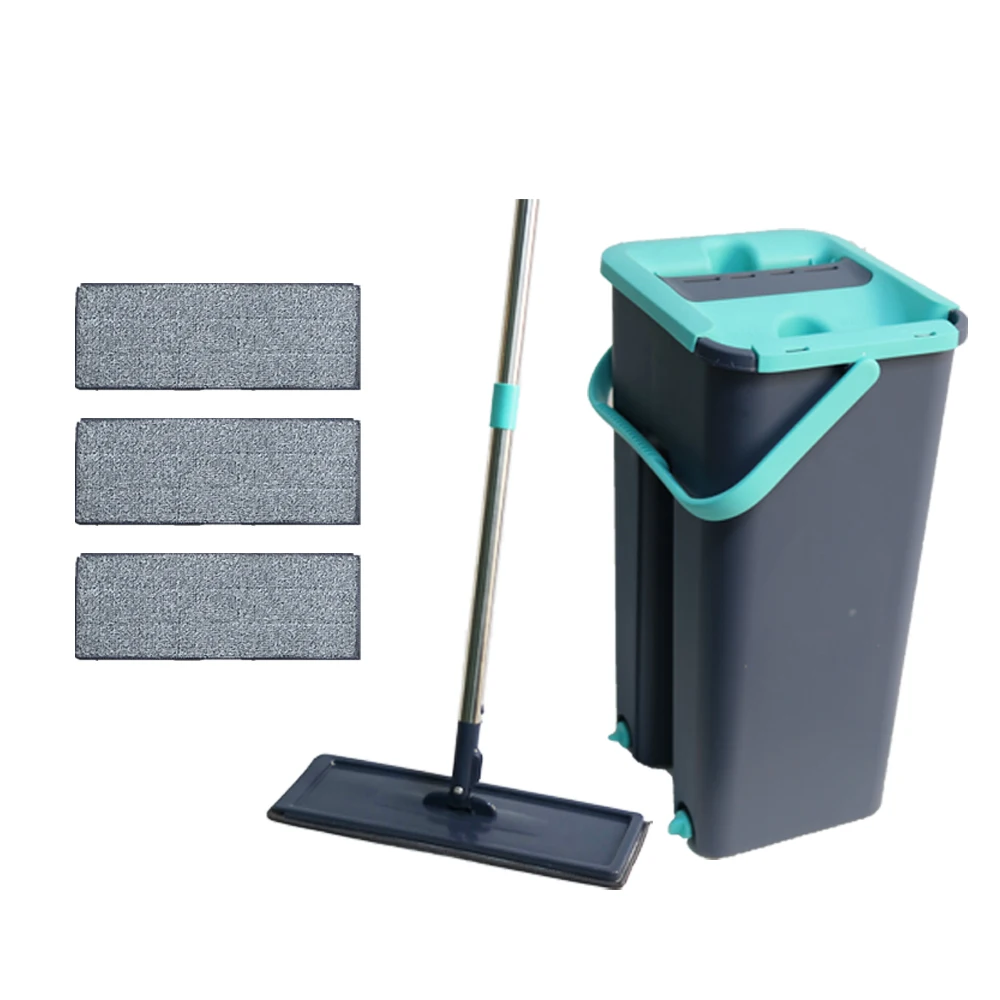 مجموعة تنظيف منزلية احترافية مع دلو ممسحة ذاتية التنظيف، رأس تنظيف أرضي مسطح بدون استخدام اليدين، وسادات من الألياف الدقيقة قابلة للغسل، عمود فولاذي